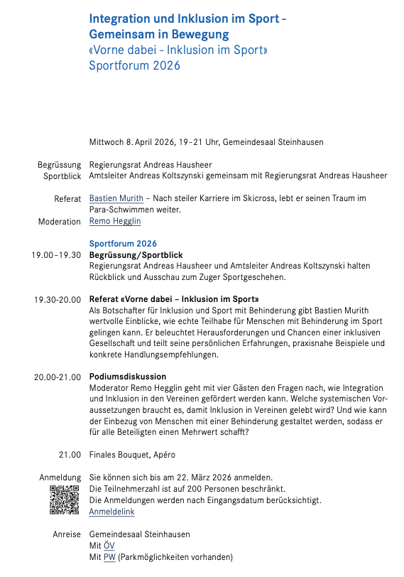 Ihr könnt Euch bis am 22. März 2026 anmelden.